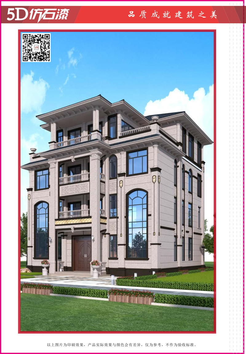 5D仿石漆采用有机硅树脂,水性聚氨脂树脂,通过制成造粒的厚浆的水性液体基料,将其放入水性保护胶体中剪切成小型水性液态色粒,然后将多种颜色的水性液态色粒混合而产生的仿花岗岩效果涂料。具有无毒无味,低VOC,轻量安全、耐候、耐污、耐擦洗、耐酸、耐碱、提供弹性抗裂及全天候性装饰及保养。轻量安全,为高档建筑外墙石材,瓷砖以外提供更环保、更高效益的建筑设计方案堪称高档建筑外墙装饰的最佳选择。