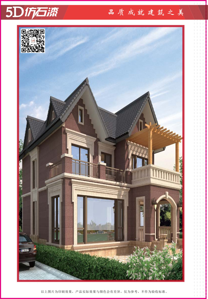 5D仿石漆采用有机硅树脂,水性聚氨脂树脂,通过制成造粒的厚浆的水性液体基料,将其放入水性保护胶体中剪切成小型水性液态色粒,然后将多种颜色的水性液态色粒混合而产生的仿花岗岩效果涂料。具有无毒无味,低VOC,轻量安全、耐候、耐污、耐擦洗、耐酸、耐碱、提供弹性抗裂及全天候性装饰及保养。轻量安全,为高档建筑外墙石材,瓷砖以外提供更环保、更高效益的建筑设计方案堪称高档建筑外墙装饰的最佳选择。