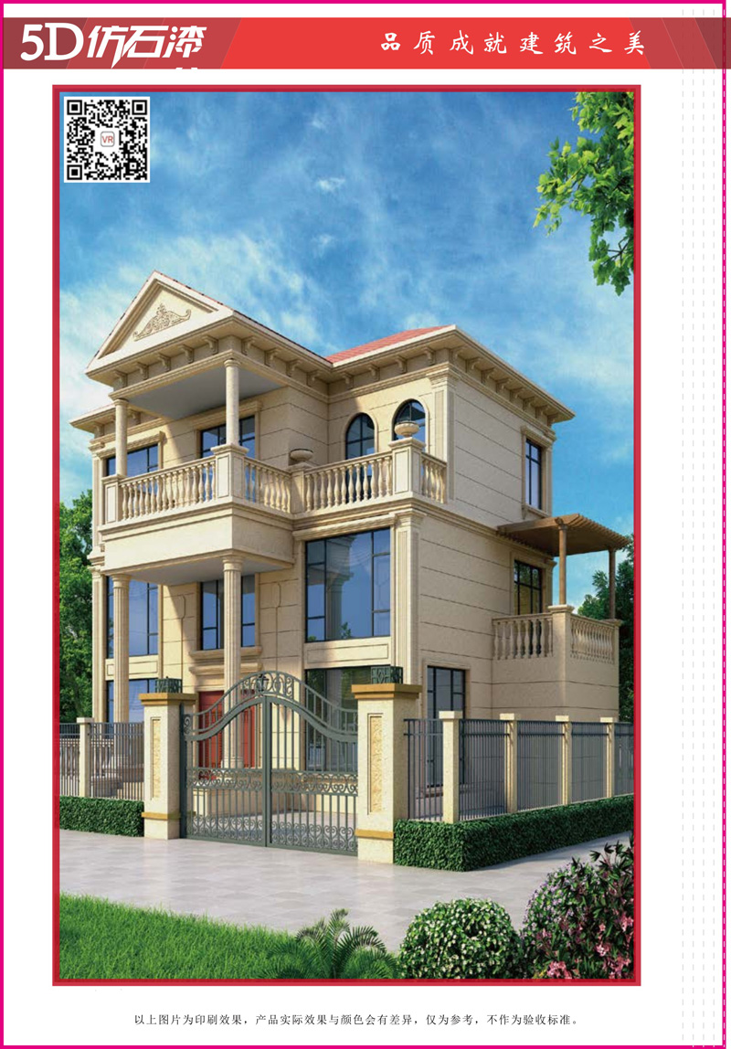 5D仿石漆采用有机硅树脂,水性聚氨脂树脂,通过制成造粒的厚浆的水性液体基料,将其放入水性保护胶体中剪切成小型水性液态色粒,然后将多种颜色的水性液态色粒混合而产生的仿花岗岩效果涂料。具有无毒无味,低VOC,轻量安全、耐候、耐污、耐擦洗、耐酸、耐碱、提供弹性抗裂及全天候性装饰及保养。轻量安全,为高档建筑外墙石材,瓷砖以外提供更环保、更高效益的建筑设计方案堪称高档建筑外墙装饰的最佳选择。